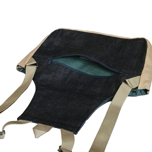 両サイドは物が入れやすいように大きく開いていて、背負っていても物が入れられます。