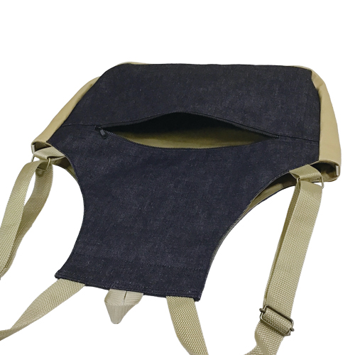 色帆布を使用した大きめリュックです。